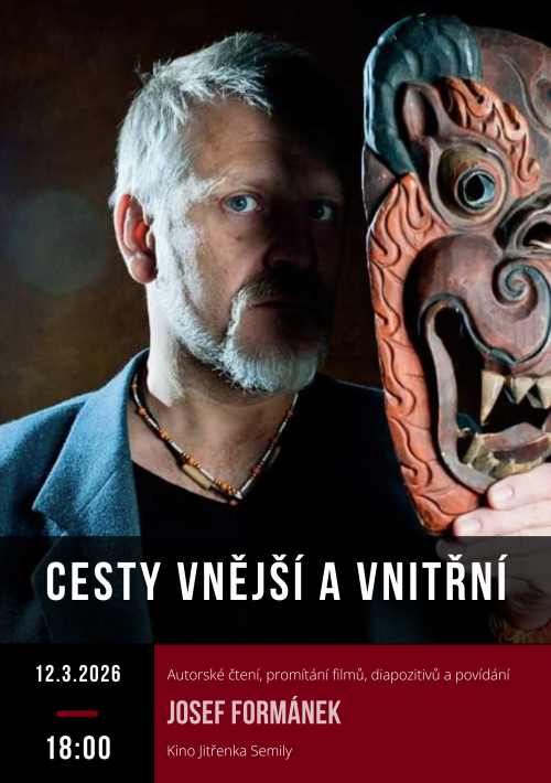 Autorské čtení, promítání filmů, diapozitivů a povídání spisovatele Josefa Formánka o pralese, šamanech, pití i nepití, okamžiku rozhodnutí a též o jeho pouti do Assisi..